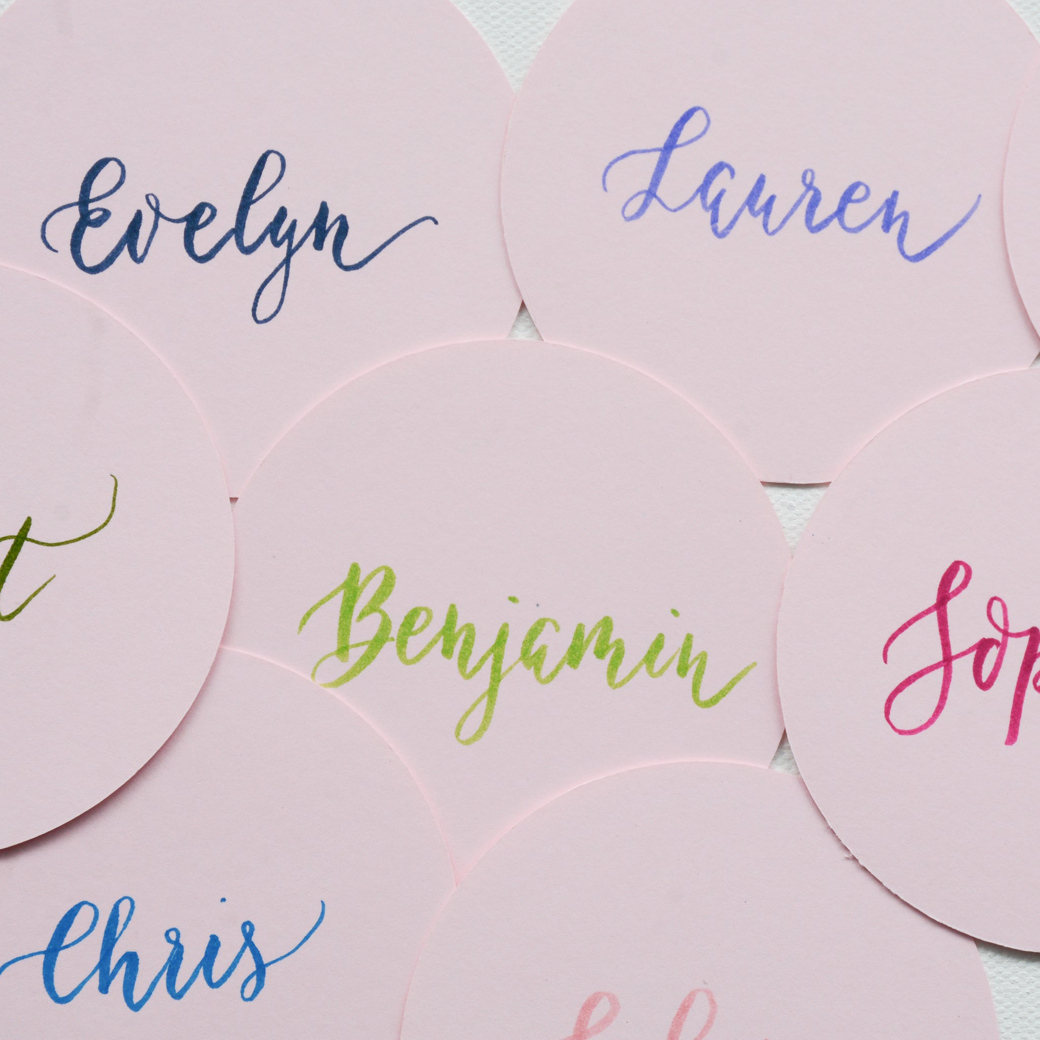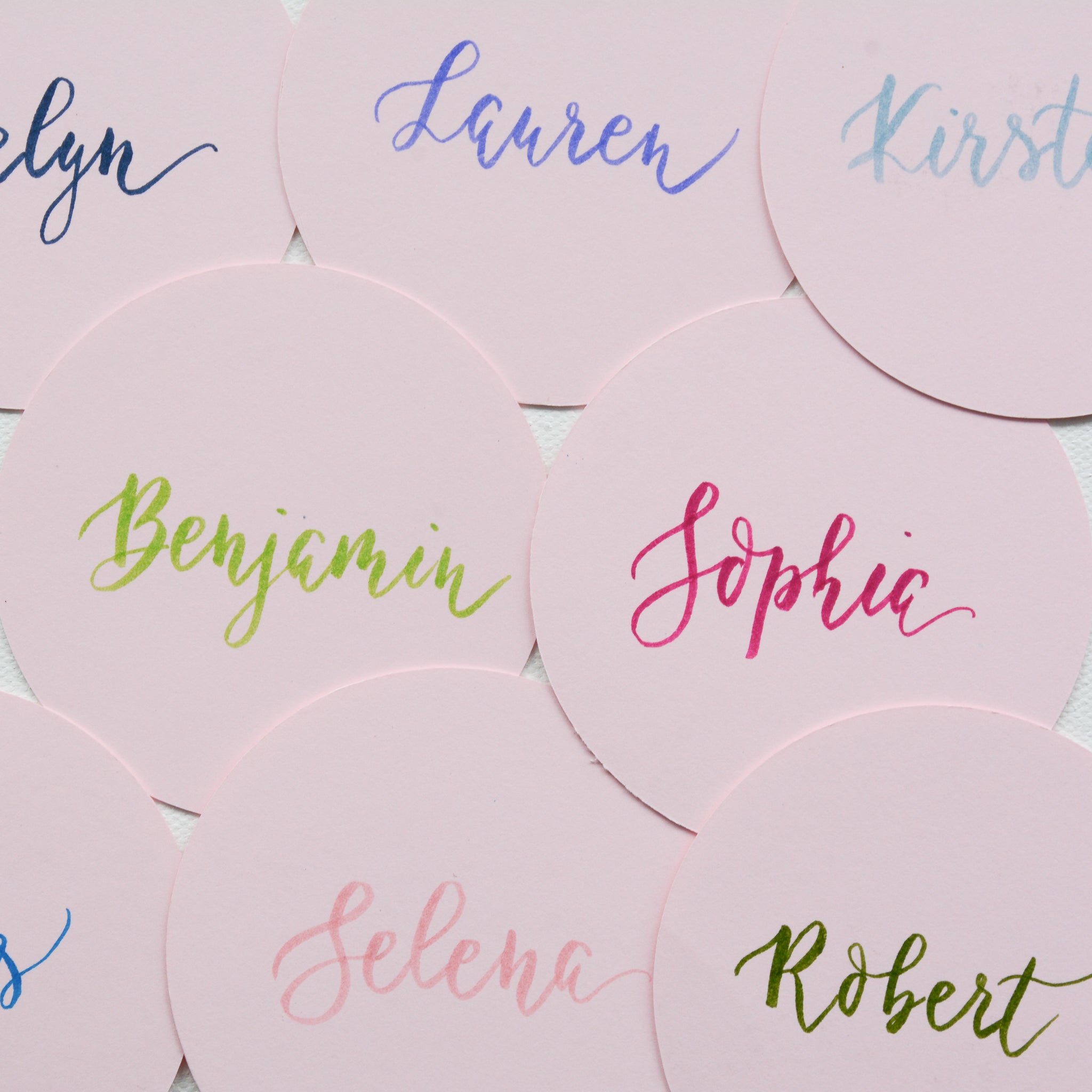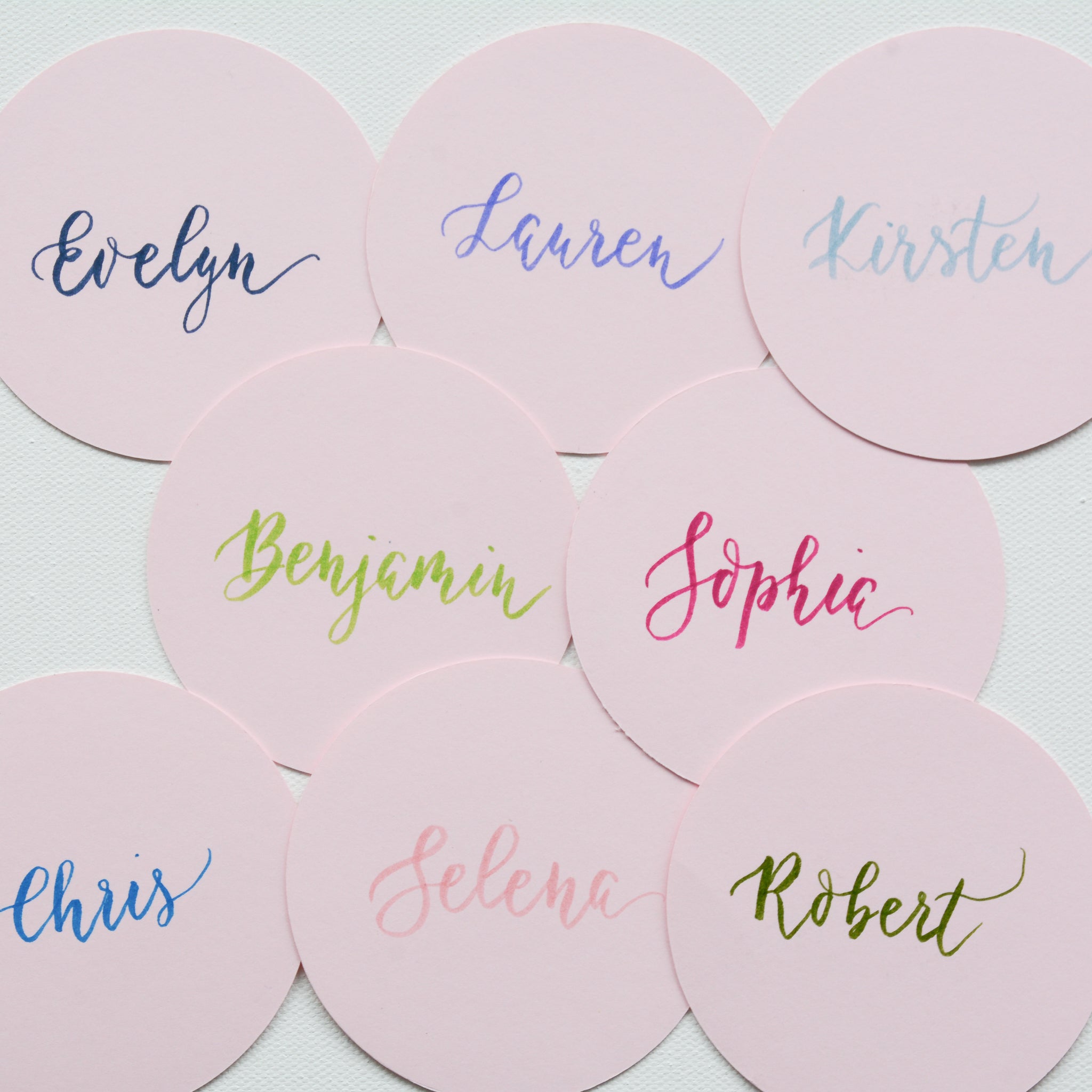 Round Handwritten Personalised Place Card