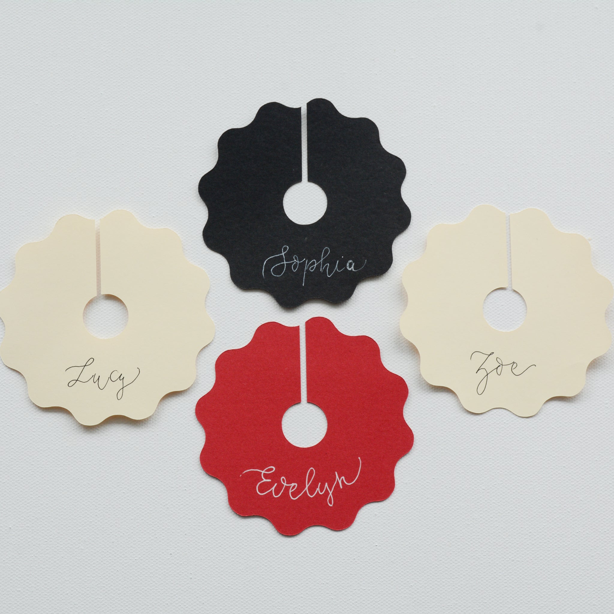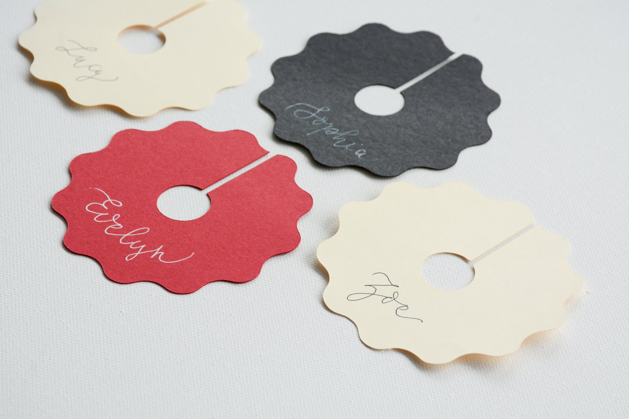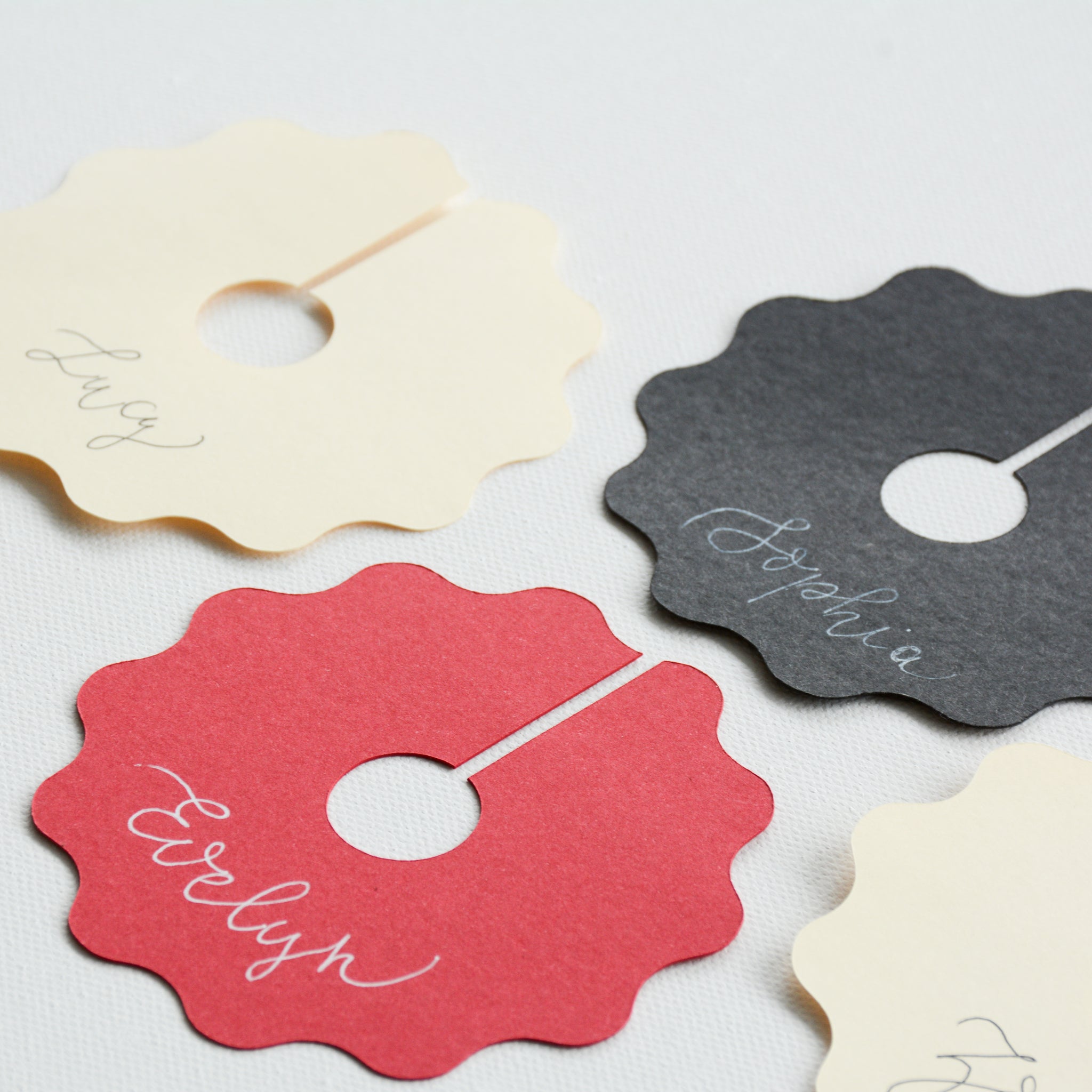 All of our place cards are made individually by hand and although every effort is made to ensure the product is perfect as possible, slight flaws or tiny flecks may be present. Also, colours on the screen may differ slightly from what you receive.